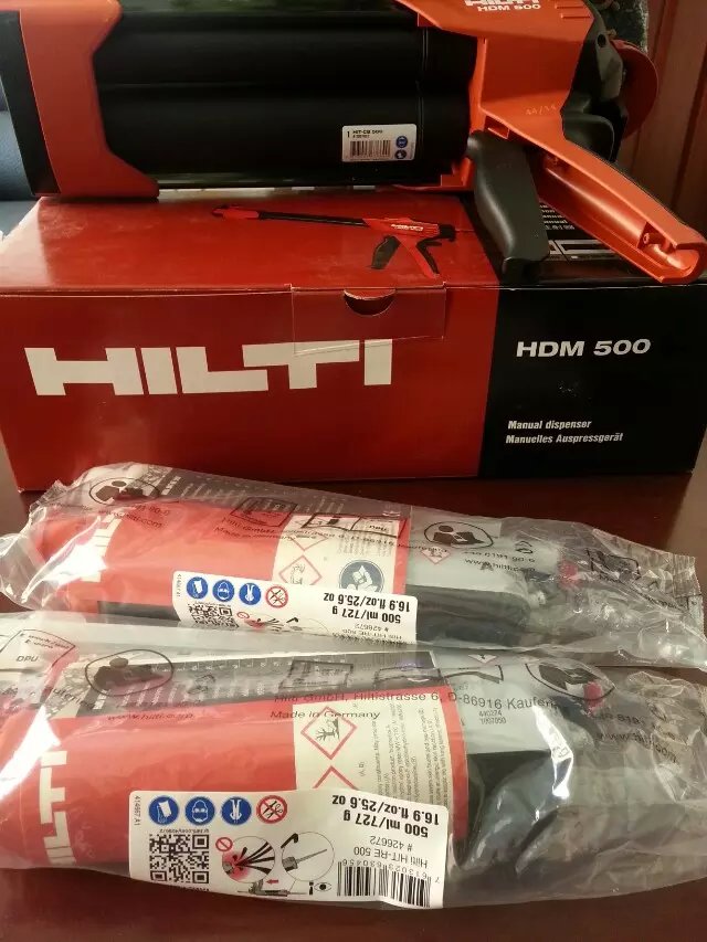 3)用喜利得MD2500專用注射膠槍灌膠,前三槍膠水必須廢棄不用